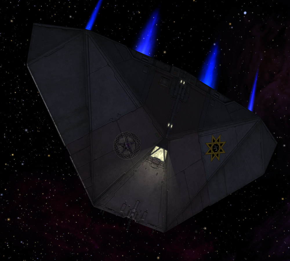 Oh, absolutely, and the Omega should definitely be used (not black-on-black, though, because it would be practically invisible) - I just don't think it should be for anything out-and-out secret. Internal Affairs, or Special Operations, or the Imperial Guard, or some sort of publicly menacing, specialist, inner-circle-type organisation that the player could get mixed up with would be fine. Anything that was really secret wouldn't advertise: and if the player gets mixed up in something like this - possibly as a covert mission involving (for, or against, or for AND against in some sort of hall-of-mirrors-who-can-you-trust affair) the Omega Division or whatever they're called - labelling the secret ships would just give the game away. The best sort of genuinely covert ship would be one that looks like a bog-standard trader.Smivs wrote:For clandestine missions, an un-marked ship would be used, but having a logo for 'routine' ships makes sense, especially if they are likely to be involved in larger skirmishes - you want your side to know who you are. Also seeing marked black ops ships from time to time is good for morale. The civilian population will feel more reassured knowing that specialists like these are 'on the case', and it might even help to kep the regular military on their toes knowing that 'the experts' are around.